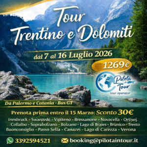 Prima colazione in hotel. Partenza per il Lago di Braies, situato nelle Dolomiti in Alto Adige, รจ uno dei laghi alpini piรน affascinanti e fotografati dโItalia. Conosciuto per le sue acque cristalline di un intenso colore verde smeraldo, il lago รจ incorniciato da maestose montagne che si riflettono perfettamente sulla sua superficie, creando un paesaggio da cartolina. Pranzo libero. Nel pomeriggio trasferimento a Brunico una pittoresca cittadina situata nella Val Pusteria, conosciuta per il suo affascinante centro storico. Visita guidata del Castello (ticket escluso), costruito nel XIII secolo, domina la cittร e ospita un interessante museo dedicato alle tradizioni locali. Durante lโestate, Brunico diventa un punto di partenza ideale per escursioni e passeggiate tra le Dolomiti, patrimonio mondiale dellโUNESCO. Con eventi culturali, mercatini tipici e una calorosa ospitalitร . Rientro in hotel. Cena e pernottamento.